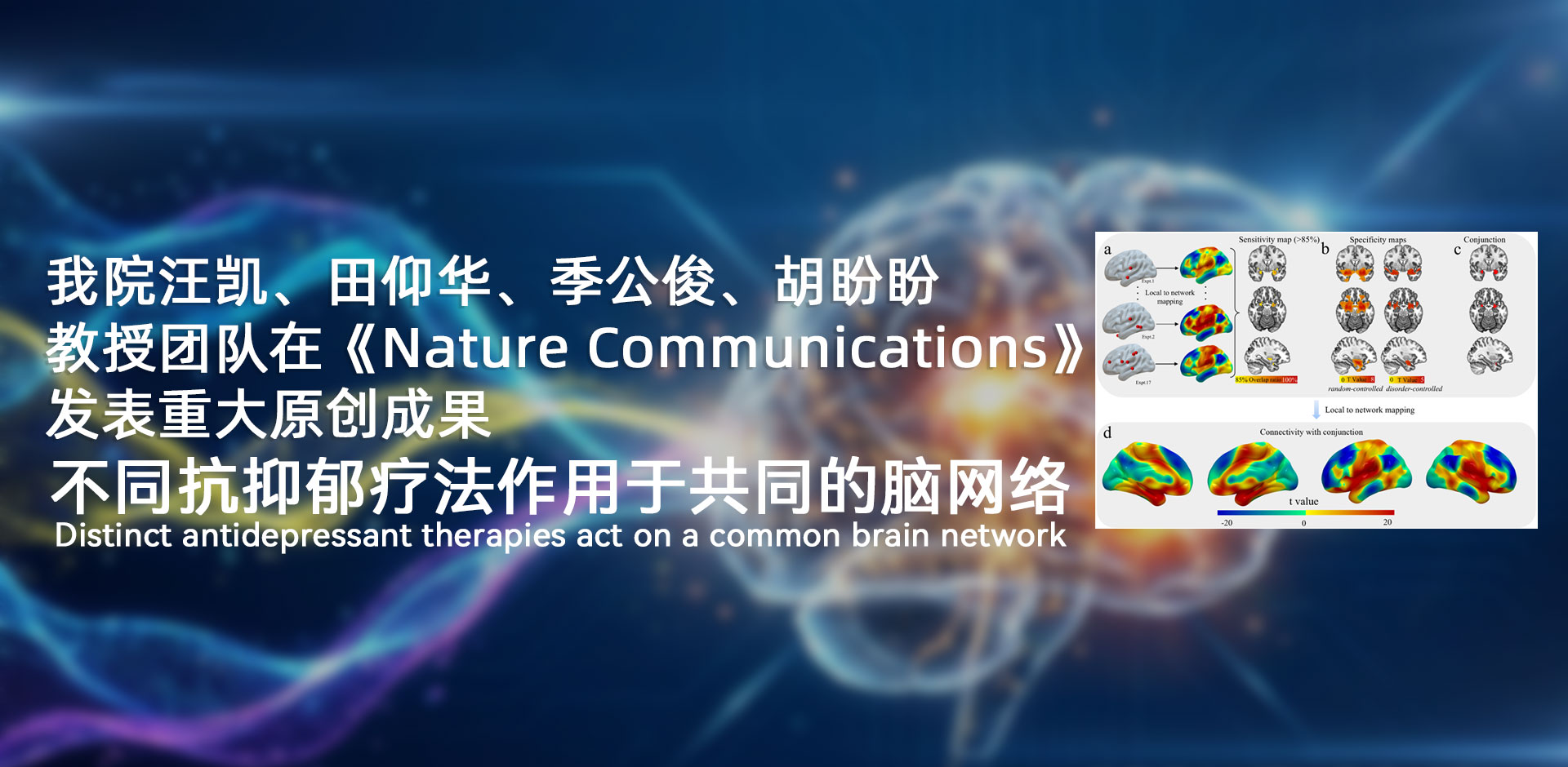 公司汪凯、田仰华、季公俊、胡盼盼教授团队在《Nature Communications》杂志发表不同抗抑郁疗法共同作用于同一大脑网络原创研究成果